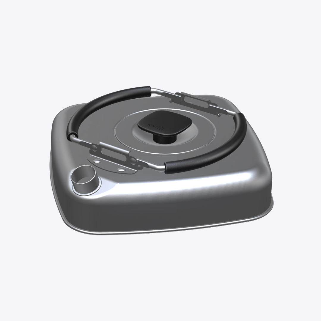 これまでのケトルとは、まったく異なる見た目が特徴。一般的には丸いボディや長い注ぎ口を圧縮し、持ち手を除く本体高さを5cmまで薄くしました。四角にすることで、スリムなのに1.6ℓもの容量を確保。普通のケトルより火と接する底面が広く、沸騰までがスピーディー。IHにも対応しています。