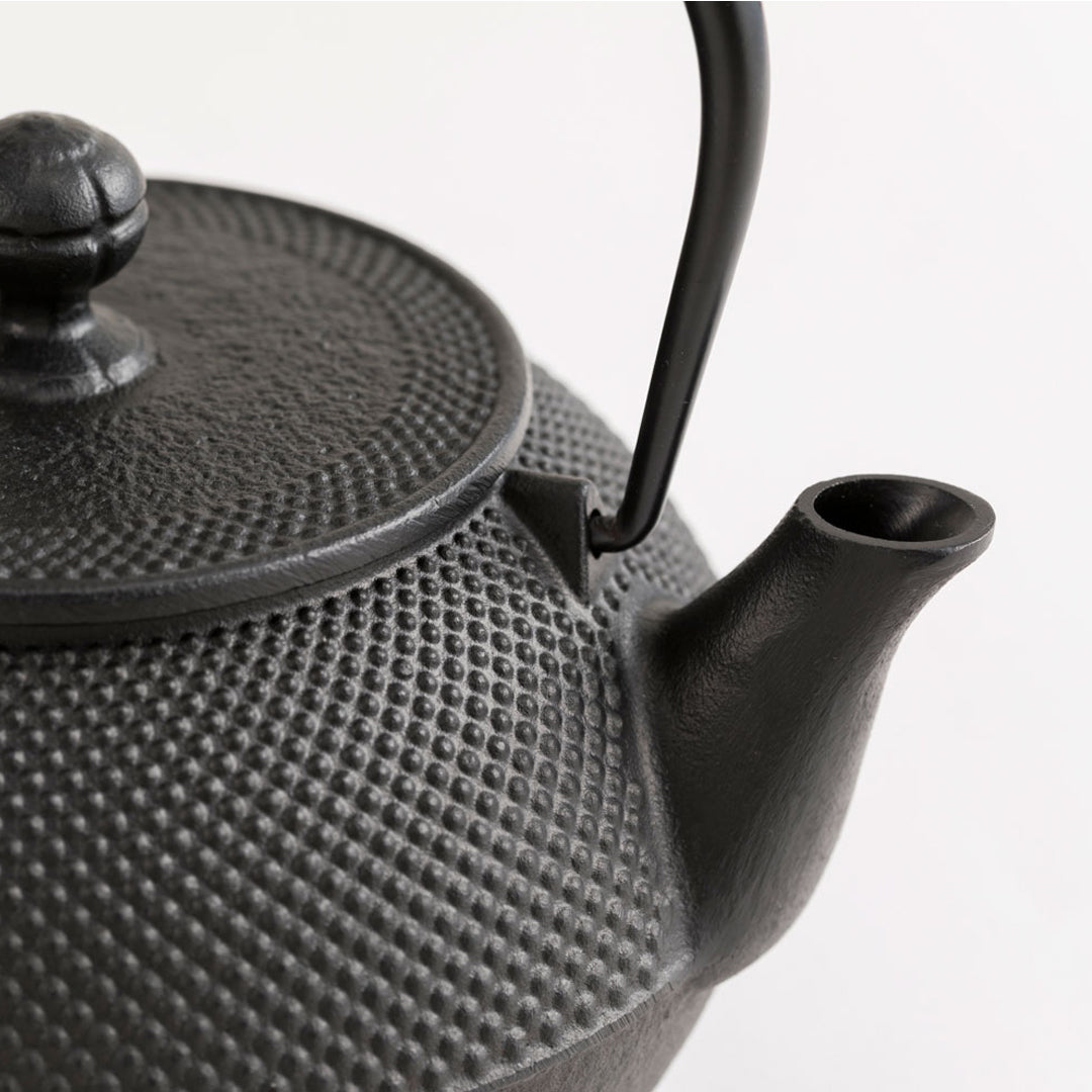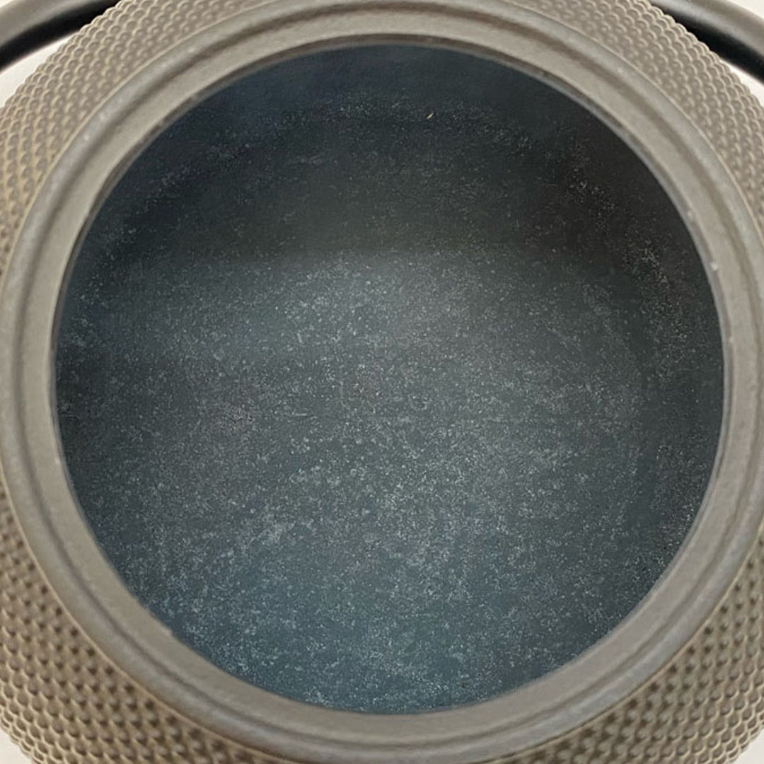 代表的なあられ模様で取手を倒すことができる鉄瓶です。少量の湯沸しに便利なサイズです。